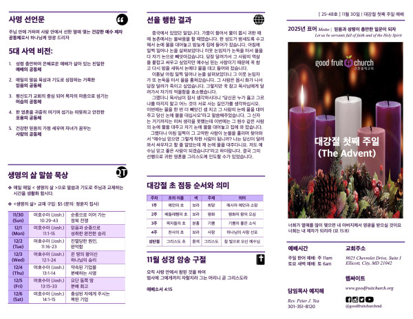 2025-11-30 페이지 정보 작성자 선한열매교회 댓글 0건 조회 182회 작성일 25-12-01 06:58 목록 본문 2025-11-30 이전글2025-12-07 25.12.08 다음글2023-11-23 25.11.24 댓글 0 댓글목록 등록된 댓글이 없습니다. 목록