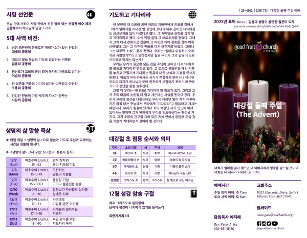 2025-12-07 페이지 정보 작성자 선한열매교회 댓글 0건 조회 120회 작성일 25-12-08 06:46 목록 본문 2025-12-07 이전글2025-12-14 25.12.15 다음글2025-11-30 25.12.01 댓글 0 댓글목록 등록된 댓글이 없습니다. 목록
